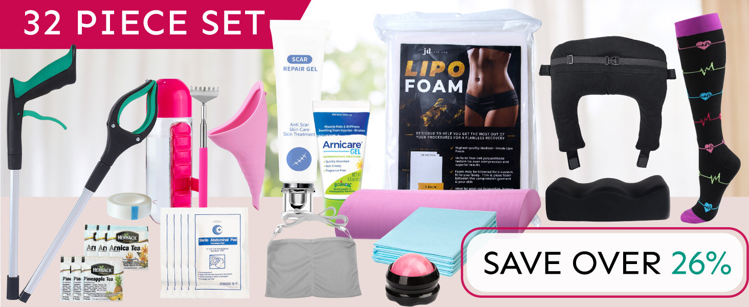 Experience a seamless post-op recovery with the BBL Plus Post Surgery Supplies Kit (36-Piece Set). Handpicked in collaboration with top plastic surgeons, this all-in-one recovery package is designed to meet every need after your Brazilian Butt Lift. No more overspending on random supplies or endless trips to the store — this kit has been carefully curated to support your comfort, healing, and results from day one.