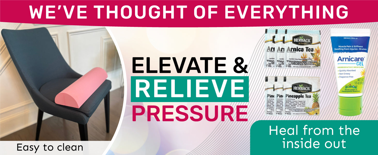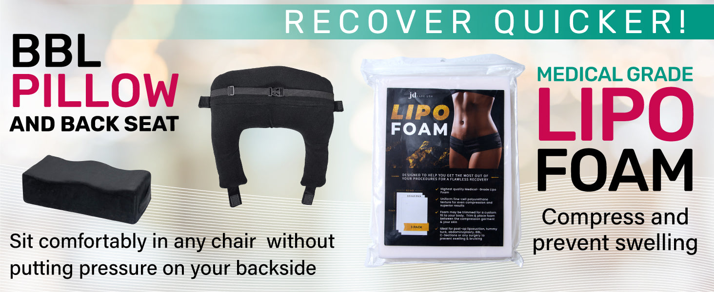 Rest in Comfort – Specially designed back & bum support pillows let you rest without putting pressure on your backside, preserving your BBL results.