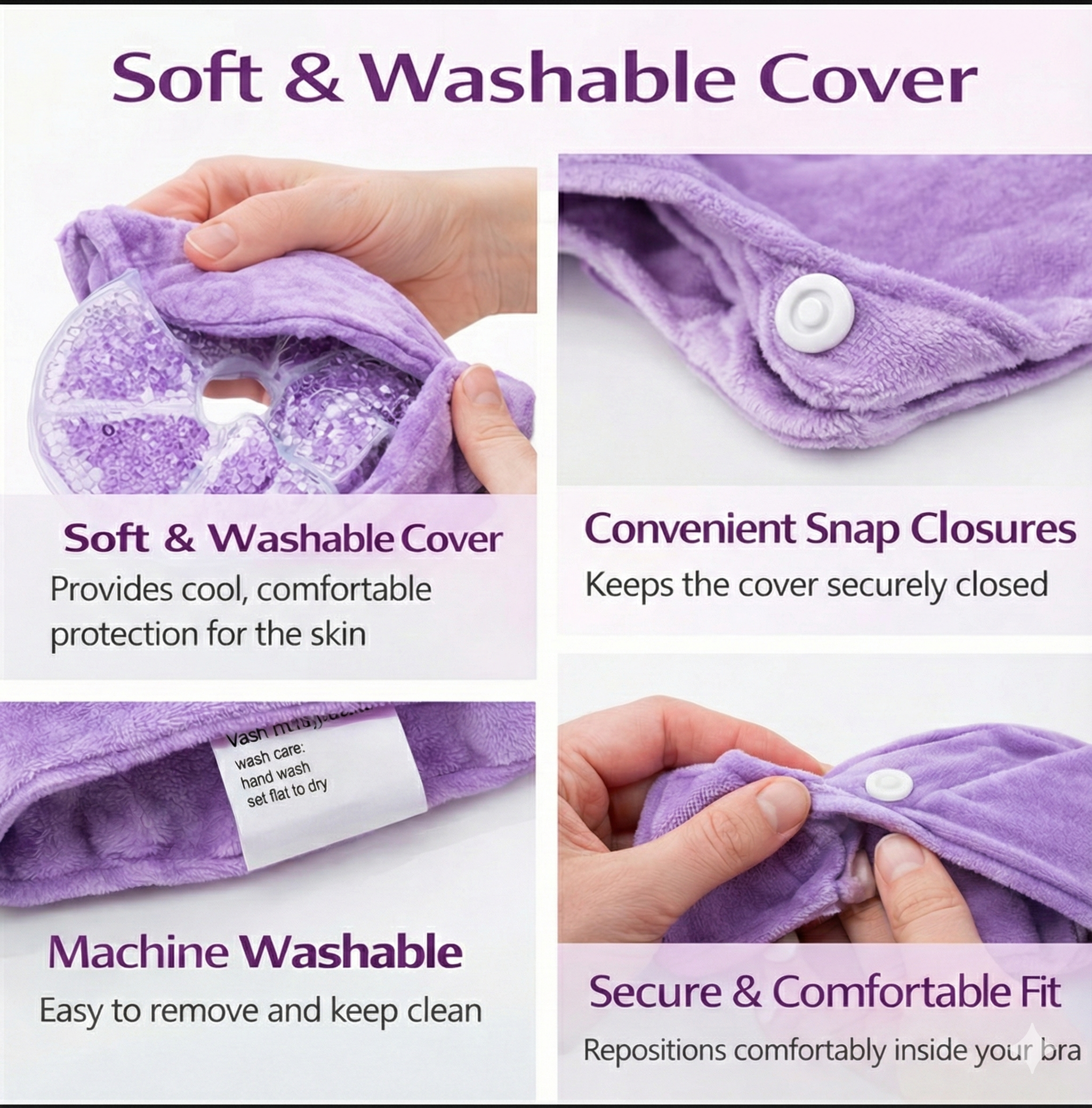 Each pack includes a removable velvety cover that feels gentle against healing skin and helps prevent direct contact with the gel surface.