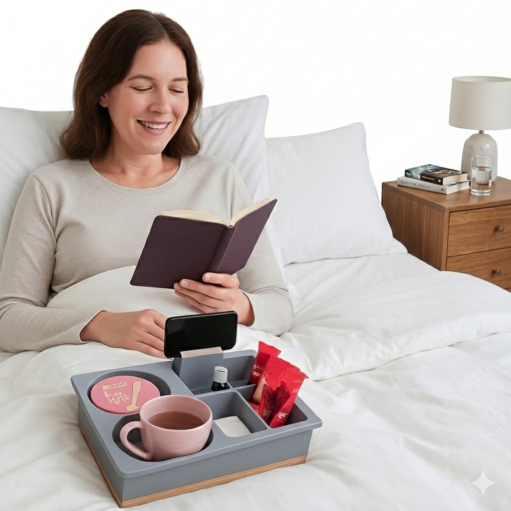 Reduce unnecessary reaching and twisting: Keep daily essentials organized and close. Ideal for resting, reading, and relaxing in bed