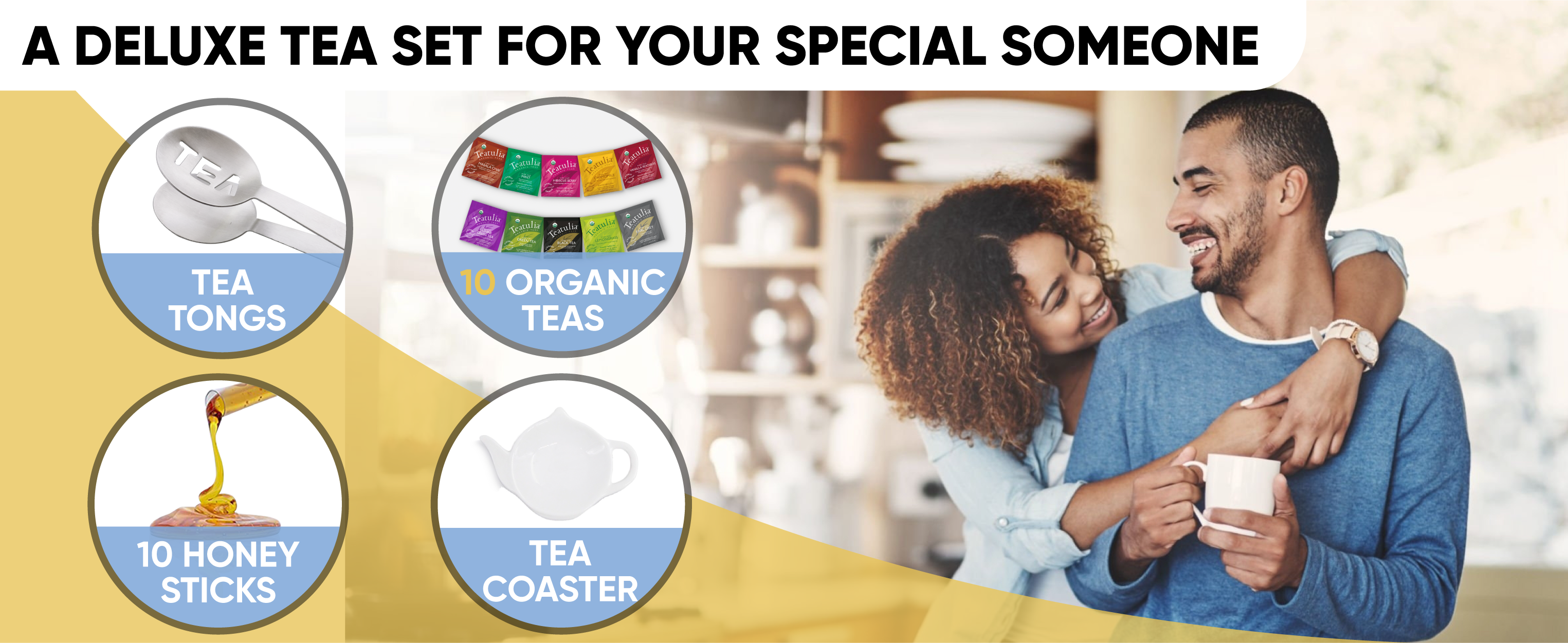 Includes premium teas and accessories for an upgraded tea-time ritual
