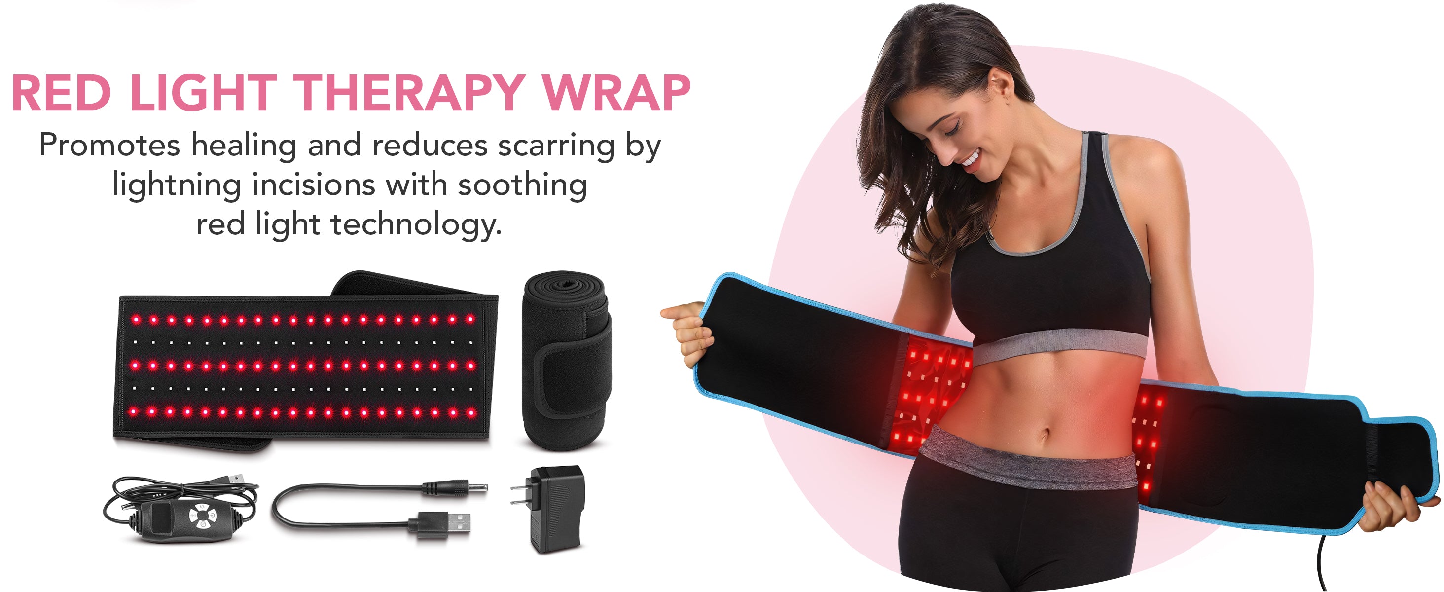 Advanced Scar Therapy – Features a red light therapy wrap that promotes faster scar healing, stimulates cell turnover, and enhances skin texture.
