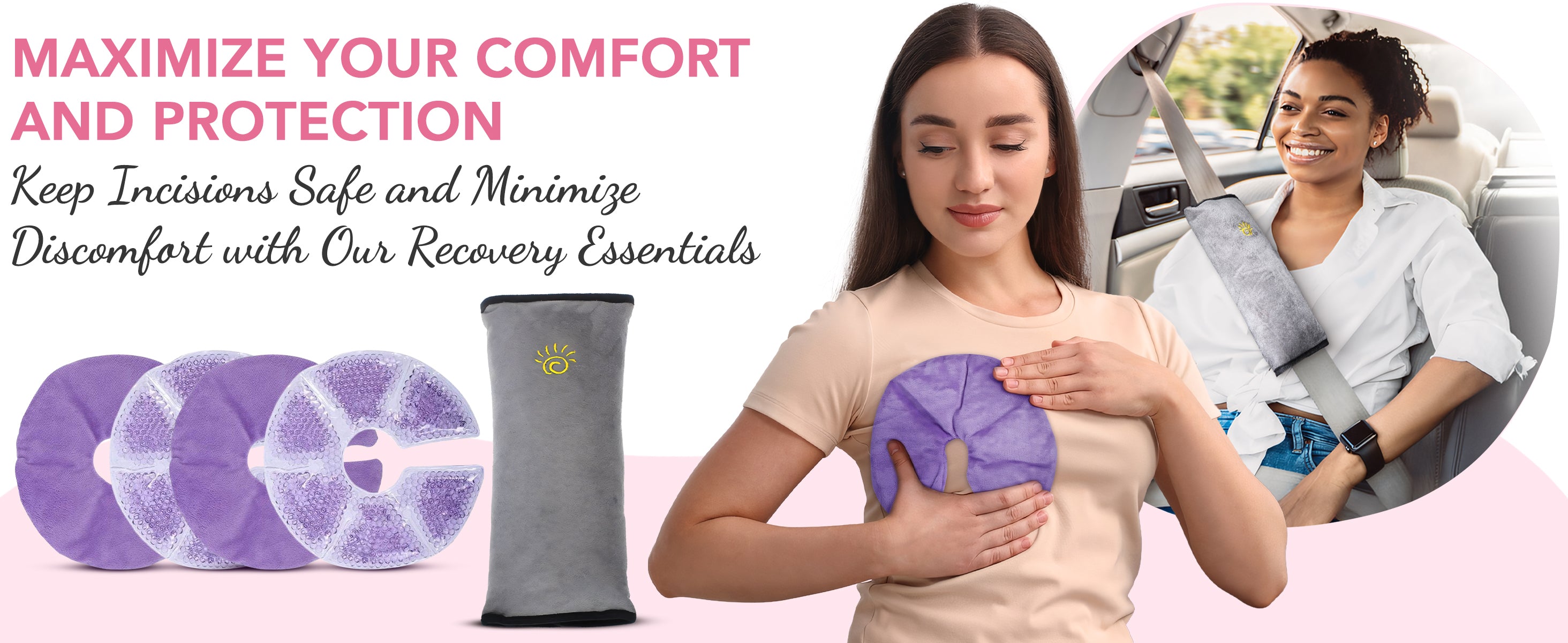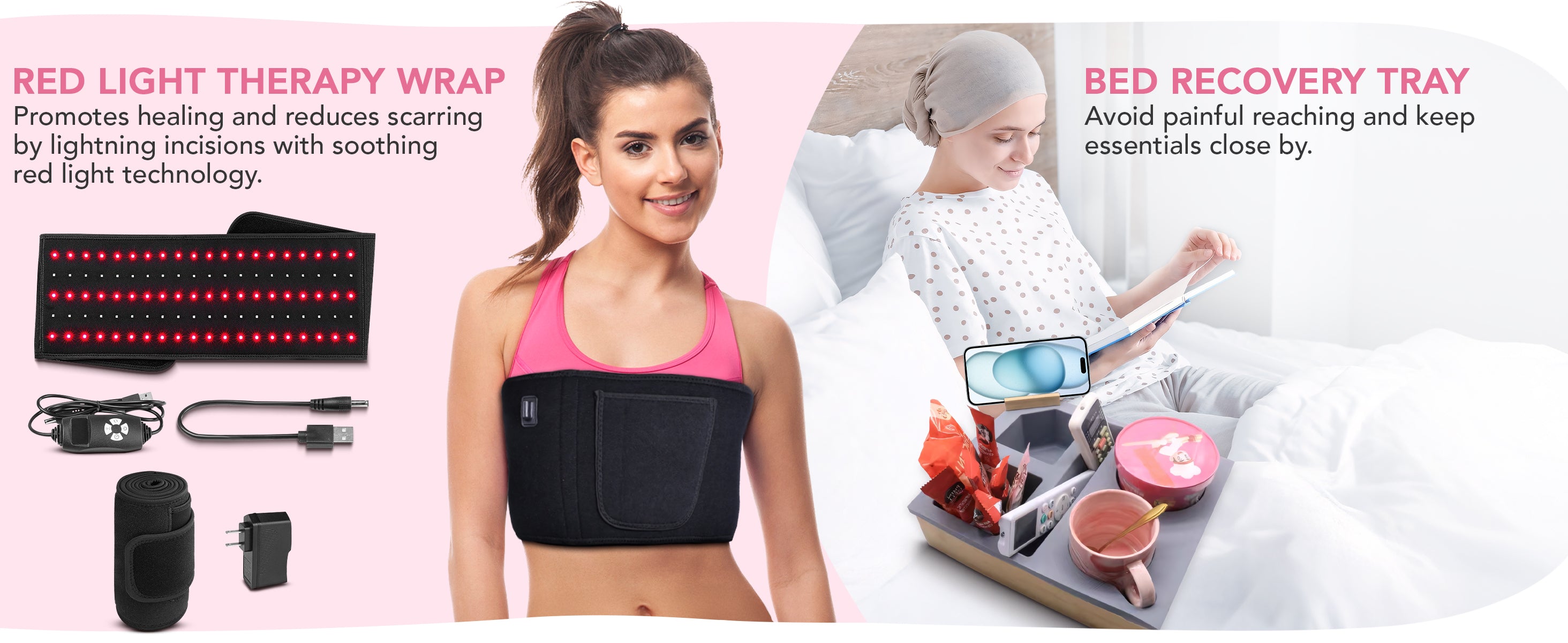 Pain and Swelling Relief with two sets of soft breast ice packs plus a red light therapy wrap to ease discomfort, reduce inflammation, and support smoother recovery.